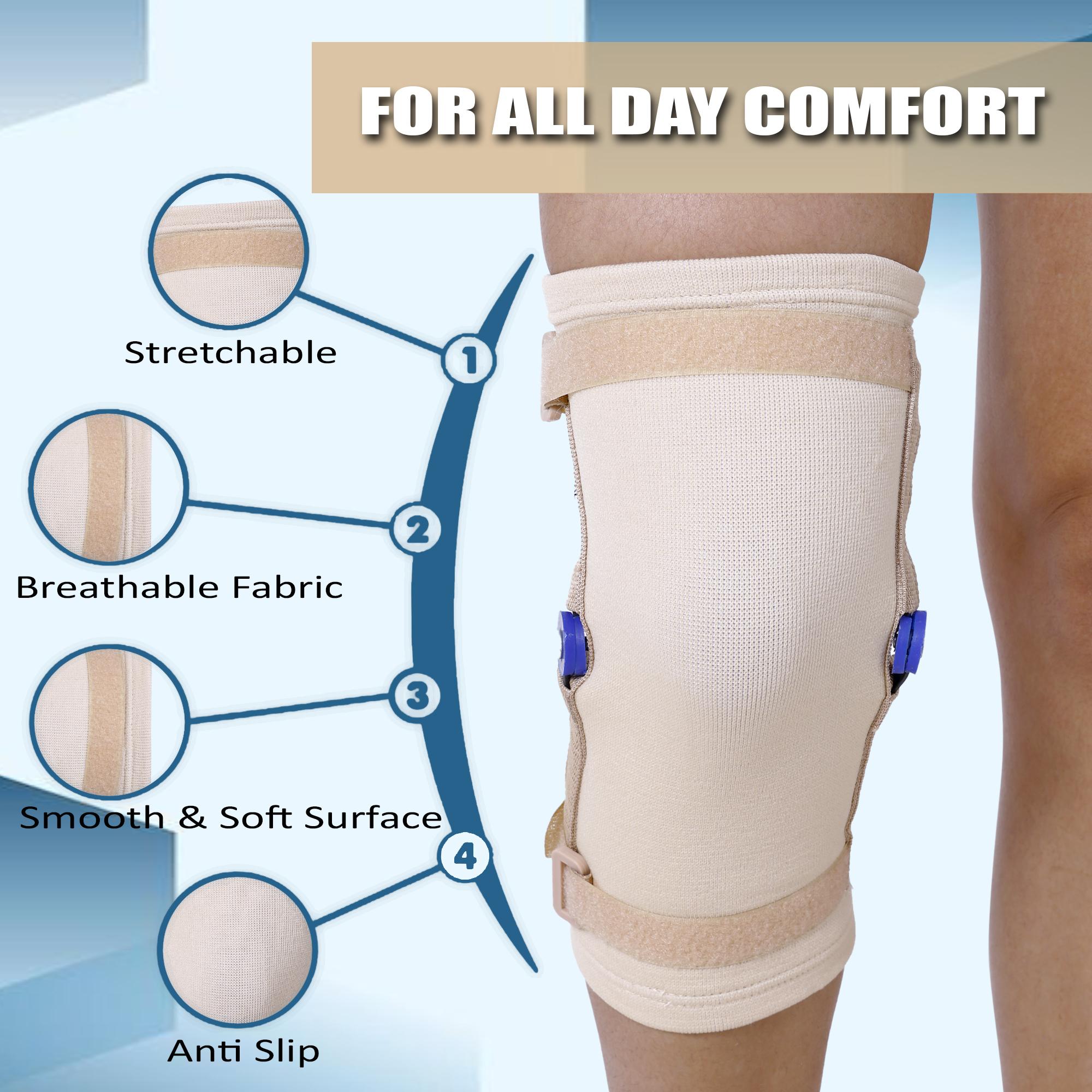 The brace features durable side hinges that guide the knee’s natural range of motion while preventing excessive or harmful movements that could aggravate the injury. This controlled support ensures the knee remains protected during recovery, rehabilitation, or daily activities. The hinges allow the wearer to regain mobility gradually without compromising stability, making the brace an essential aid for those recovering from moderate to severe injuries.